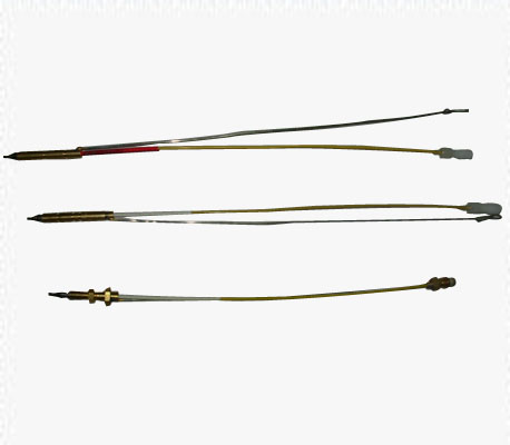 热电偶的前端在燃烧器上加热后产生热电势,电磁阀线圈上产生电流.在这种状态下,通过推杆使电磁阀的可动铁片与固定铁芯相接触,通过磁力使可动铁片与固定铁芯吸着,即使没有了推杆的推力, 燃气通路仍然处于打开状态。如果在此状态下熄火,热电偶的前端温度降低、热电势逐渐消失,固定铁芯将不再与可动铁片吸着,通过弹簧的反弹力使胶垫封住燃气通路口。